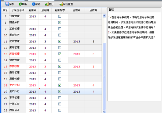 主要功能:启用生产执行子系统,确定启用年度及月份。