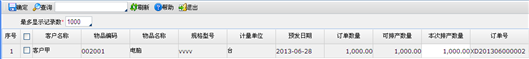 本次排产数量 | 本次要生成主生产计划的数量,可以手工修改。 |