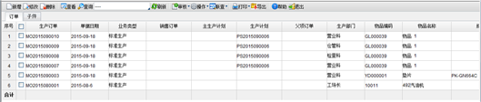 可以通过生产订单列表查询订单的生产执行情况以及子件的使用情况,如:完工数量、未完工数量、合格数量、报废数量、返工数量、补废数量、合格入库、报废入库数量。
