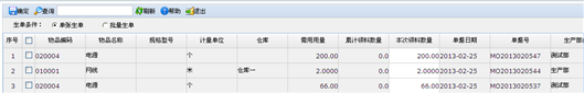 整套领料选择生产订单的界面与普通领料的相同,下面展示一下整套领料查询生产订单界面。