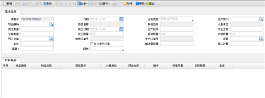 单据日期 | 默认当前系统登录日期,可改,但不能早于生产订单日期。 |