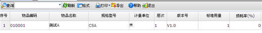 标准用量 | 当分层查询时,显示为该层的标准用量。 汇总查询时,显示的数量为在这个主bom中,一共用了多少这个物品。 |