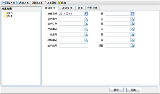 【第一步】点击“生产执行/账表/生产订单领料明细”菜单项,进入生产订单领料明细表查询条件设置页面,如下图所示。