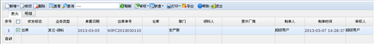 点击“查询”按钮,进入在制品出库查询界面。如下图所示。