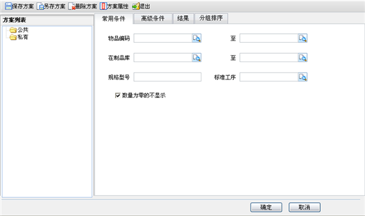 【第一步】点击“车间管理/账表”菜单项,点击“在制品现有库存查询”,进入在制品现有库存查询条件设置页面。如下图所示。