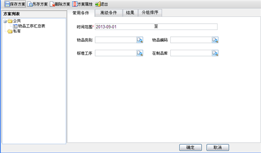 【第一步】点击“车间管理/账表”菜单项,点击“在制品收发存汇总表”,进入在制品收发存汇总表查询条件设置页面。其中有“*”标识的是必输项。如下图所示。