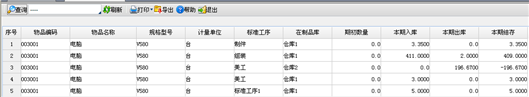 主要功能:统计工序在制品的期初数量、本期入库、本期出库及结余。
