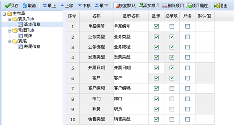 单据格式设置用于设置单据在显示时用户自己想要的显示项目。系统默认预置了一些单据的格式,用户可以根据自己的需求修改相应的格式。