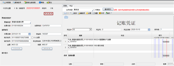 5. 如启用智能记账功能,可针对当前扫描票据自动生成凭证。