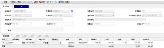 - 银行账号:即开票客户的银行账号。请在基础数据中先行设置客户的相应信息,或直接在发票页面手工录入。