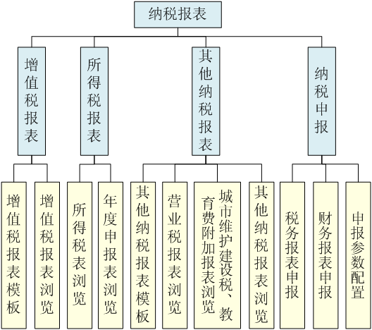 纳税报表的主要功能有:增值税报表模板和报表维护、所得税报表浏览、其他纳税报表模板报表维护和纳税申报。