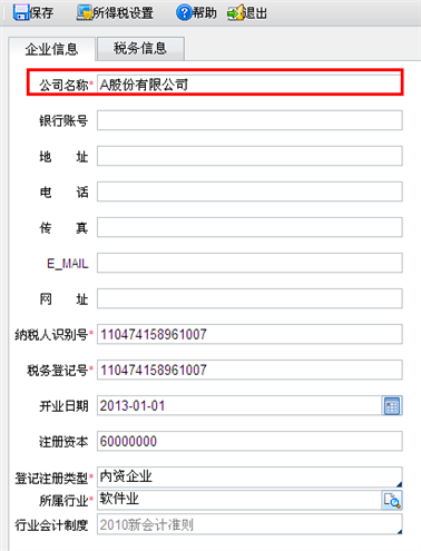 若用户在“系统/系统信息/企业信息”中设置的公司名称如下图所示: