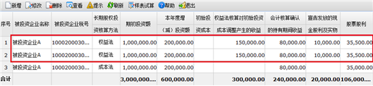 - 核算方法:下拉选择,可选择权益法或成本法。手工书写公式时直接书写中文的核算方法名称即可。核算方法不同,取数时的规则不同。
