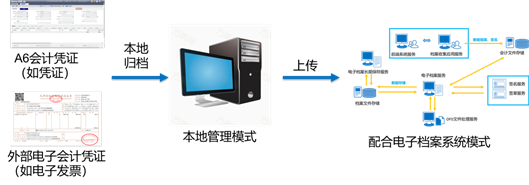 本地管理模式就是根据上述规定,将企业的会计电子档案(如凭证等),及原始的电子会计凭证归档到本地进行保存、管理。