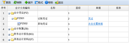 会计档案分类对应关系功能可以设置会计档案分类与A6系统单据的归档对应关系,即A6的单据(如凭证)或报表归档到哪个会计档案分类下面。