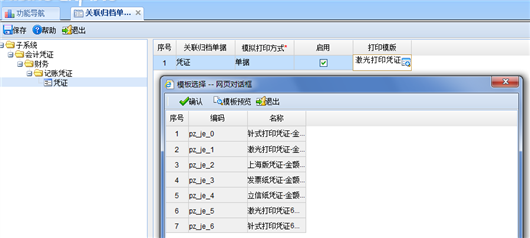 通过点击“电子档案/文件归档/归档设置”菜单项,设置A6单据或报表的打印模板,用于归档时按指定的打印模板生成电子档案版式文件。