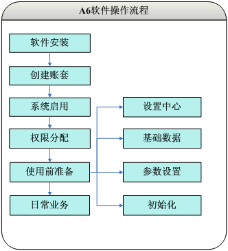 首次使用软件时,需进行软件安装、账套建立等工作,具体流程如下图所示。