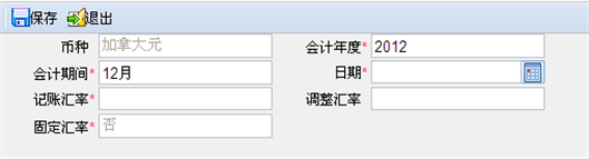 调整汇率 | 即月末汇率,在期末计算汇兑损益时使用此汇率。平时可不输入,等期末计算汇兑损益时再输入,本汇率不作其它用途。 |