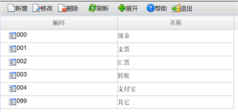 - 只有未使用的结算方式才可以增加下级结算方式。已被使用的结算方式不能删除。