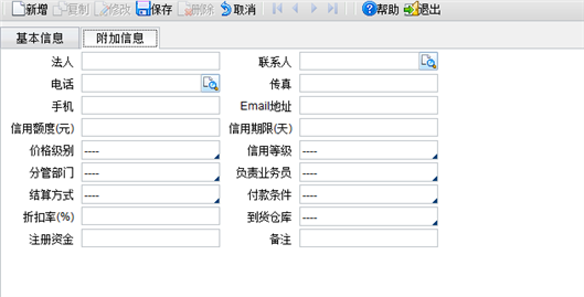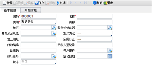 客户信息分基本信息和附加信息两部分存储。基本信息页面如下图所示。