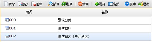 功能:用于对供应商进行分类管理时建立分类体系。可新增、修改、删除供应商分类。