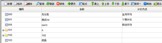 这一组按钮实现对物品分类顺序的调整,在物品档案、物品参照等物品相关界面左侧的物品分类树按调整后的物品分类顺序显示。