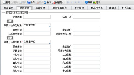功能:增加、修改、删除、复制物品档案,设置相关信息。