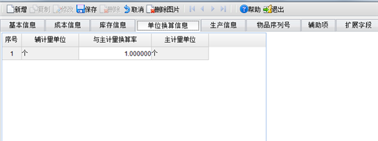 与主计量单位换算率 | 由系统根据物品基本页的计量单位自动带出。可改。主计量与主计量换算率为1,不可改。 |