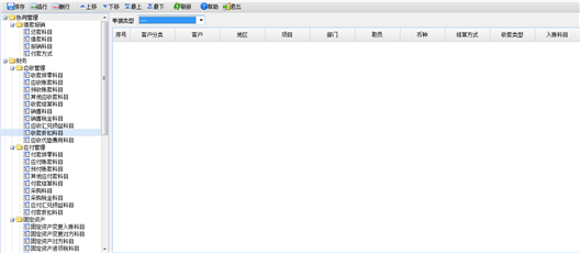 功能:针对所选记账科目分类,设置不同类型单据对应的入账科目。设置科目分类与明细科目的对照关系。如果指定记账科目分类+单据类型已经设置了影响因素,则可指定在不同影响因素下对应的明细科目。