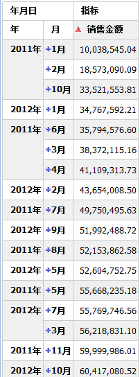 商业智能系统提供三种方式的排序:自然排序、无视层次结构排序、前几位排序。每种排序方式都可以按降序或者升序来排列。