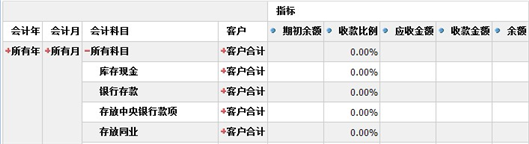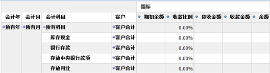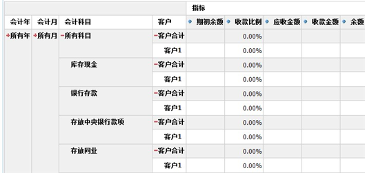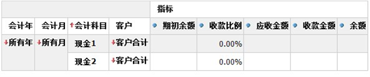以收款情况分析表为例,点击〖成员钻取〗按钮,列表中的展开图标变成红色的+号,展开所有科目后,如下图所示: