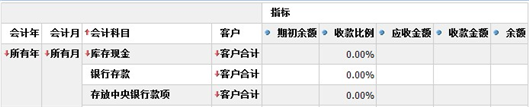 在这种方式下,如果点击了任意一个科目[客户合计]的展开图标,系统只会展开该科目对应的客户信息。结果如下: