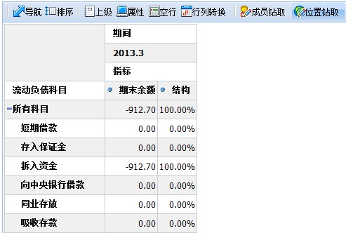 按期间分析流动负债科目余额,并提供结构分析功能。