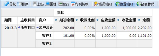 - 余额:某科目下某客户在查询期间的期末余额,计算方式为:期初余额+应收金额-收款金额;余额为正,即余额在借方,说明该客户在查询期间内,有应收款未收;余额为负,即余额在贷方,说明该客户在查询期间内,实际收款金额超过应收款金额;余额为0,说明该客户的应收款项完全收齐