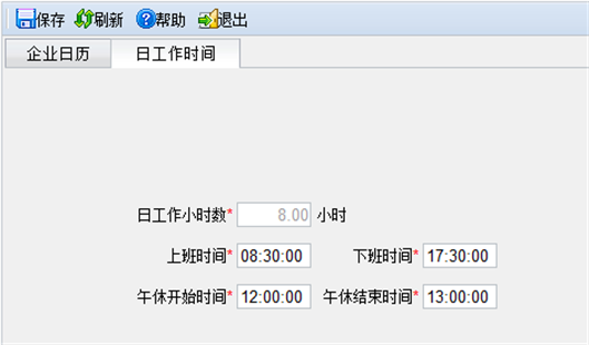 设置上班时间、下班时间、午休开始时间、午休结束时间,系统自动带出日工作小时数。