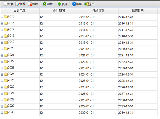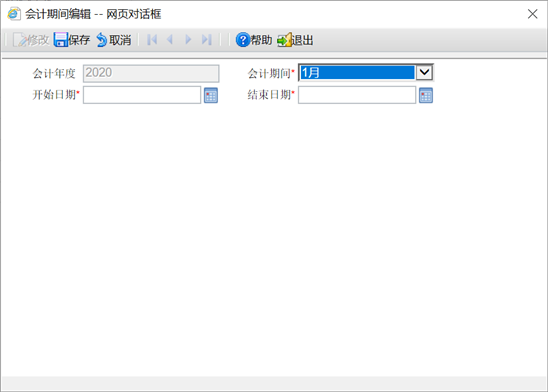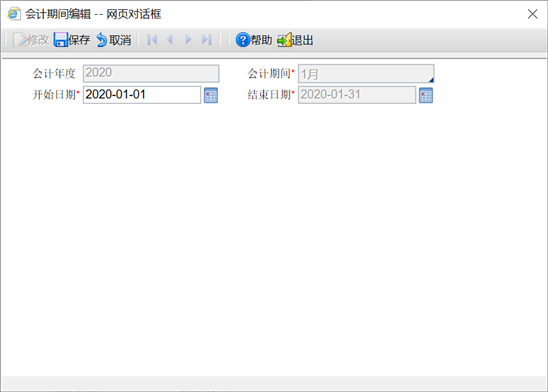 - 结束日期: 若在某一个期间修改会计期间的起始日期,系统会自动修改会计期间的结束日期。