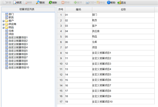 功 能:维护辅助核算项目信息。辅助核算项目也叫辅助账类。用于满足用户除总账、明细账核算外的其它核算要求。