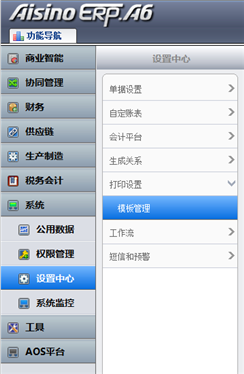 功能导航/系统/设置中心/打印设置/模板管理