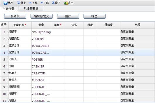 - 变量维护:维护单据打印可以设置的打印变量。