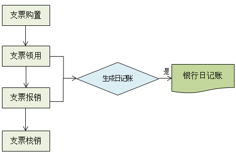 支票管理主要是对支票的购置、领用与报销的情况进行管理,通过支票管理及时了解支票领用、报销情况。业务流程如下图所示。