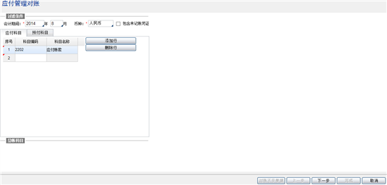 1.初始化界面:年度、期间默认当前的应付管理期间,允许修改,对账科目取自应付对账科目表。