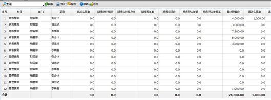 - 比较实际数:查询总账比较期间内的实际数。