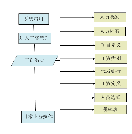 (2)进行基础数据的维护。包括人员类别、人员档案、项目定义、工资类别、代发银行、公式定义等。