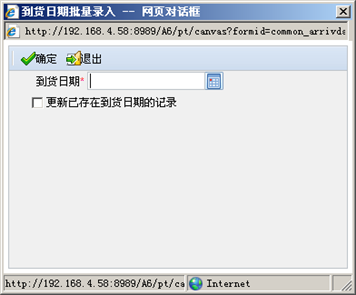 若勾选“更新已存在到货日期的记录”,订单表体的所有行(到货日期为空和不为空)都更新为此画面的“到货日期”;若不勾选则只更新到货日期为空的订单行。