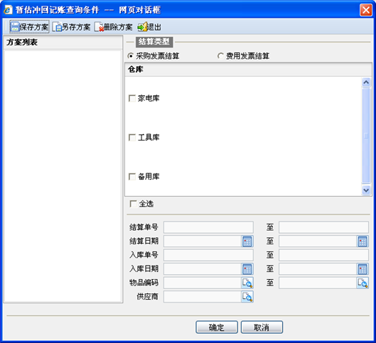 【第一步】点击“存货核算/处理/暂估冲回记账”菜单项,系统弹出过滤条件设置页面,如下图所示。