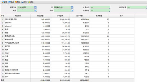 税务会计/发票管理/账表查询/销售汇总表(按商品查询)