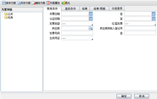 点击相关功能按钮进入增值税进项查询页面时,系统会弹出查询条件页面,现将查询条件通用栏目说明列示如下。