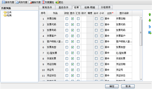 为了使用户更加直观的看到自己想要的项目和数据,可以设置数据项是否显示及精度等。也即列表格式设置功能。以增值税进项查询为例,查询页面如下图所示。